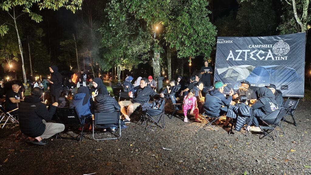 Acara Campmeet ini merupakan acara perdana khusus untuk pengguna tenda Alltrek type Azteca yang berlangsung selama tiga hari dua malam, di hari pertama tidak ada aktivias khusus dan lebih banyak meluangkan waktu untuk keluarga masing-masing, sedangkan di hari kedua ada sebuah aktivitas yang kita lakukan Bersama-sama mengexplore area sekitar camp ground atau yang disebut dengan tracking area, dimana kita melakukan dengan jalan kaki kurang lebih sejauh 8 kilo meter dengan waktu ditempuh selama 1 jam para peserta sudah kembali ke area camp ground, pada akitivitas tracking ini kita mempunyai tema/slogan “KEMPING BOLEH NYAMPAH JANGAN” dimana kita akan memberikan sebuah hadiah bagi para peserta jika selama tracking peserta mengambil sampah-sampah yang dapat merusak lingkungan/alam sekitar, lalu dimalam hari adalah aktivitas yang ditunggu-tunggu oleh para peserta, yaitu makan malam Bersama yang telah dihidangkan dengan menu domba guling beserta makanan/minuman lainnya yang dibawa masing-masing oleh para peserta atau yang biasa kita sebut potluck dilengkapi dengan api unggun yang menghangatkan badan, selama acara makan malam ada juga sesi perkenalan dari para sponsor yang telah mendukung Campmeet Azteca ini serta peserta yang baru pertama kali mengikuti aktivitas camping Bersama ini.